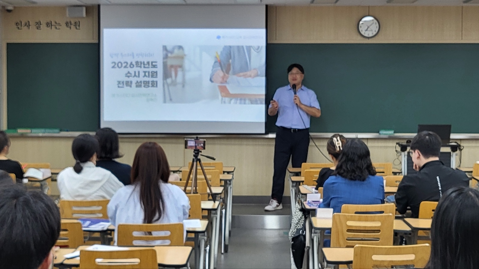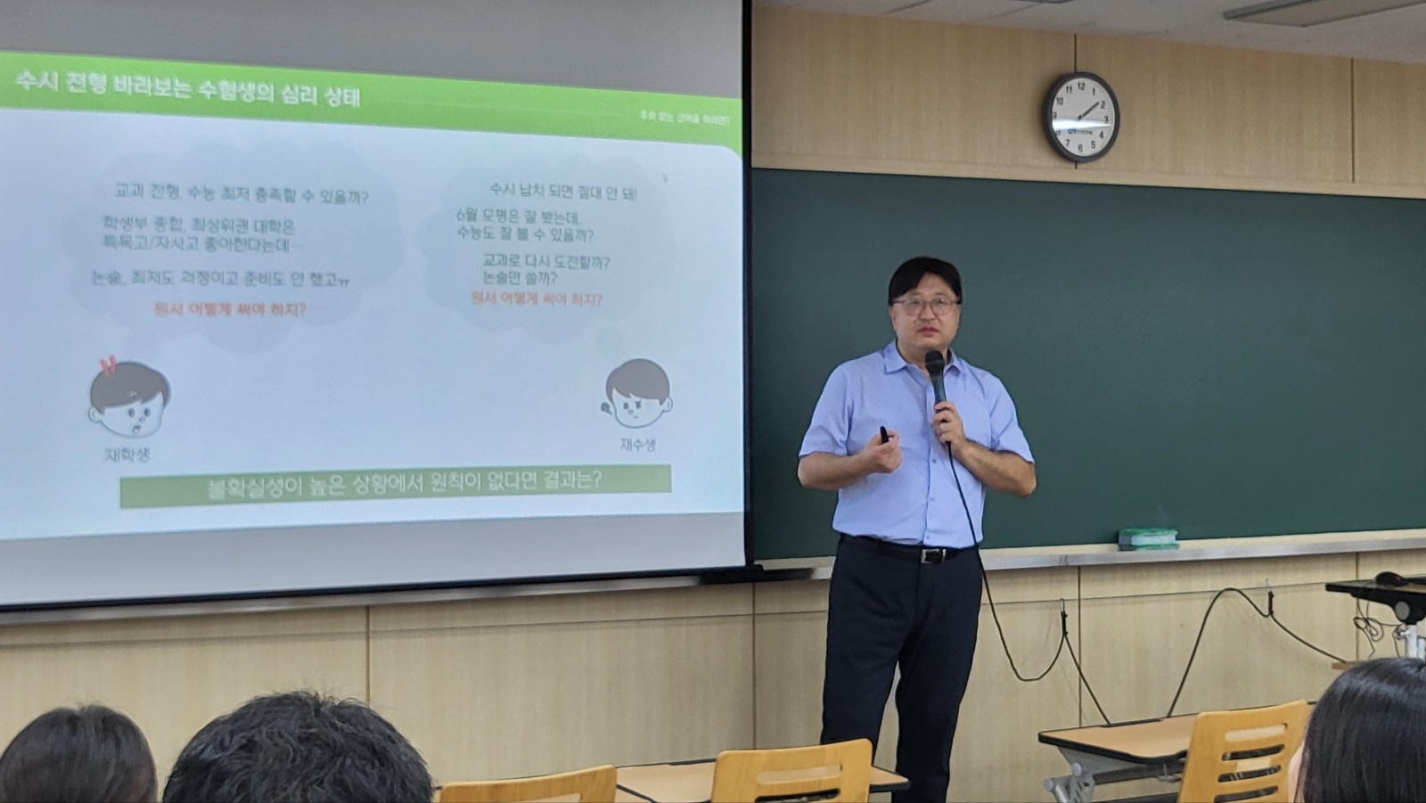 '메가스터디 입시전략 연구소의 장혁진 팀장'님께서 수시 지원 전략 설명회를 진행하였습니다.